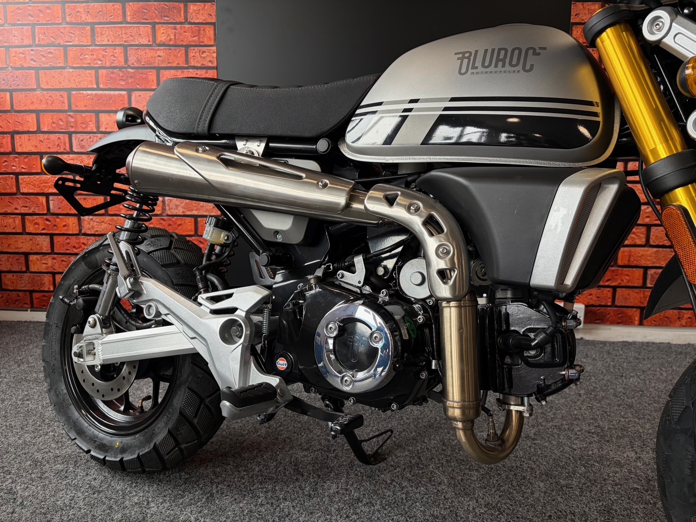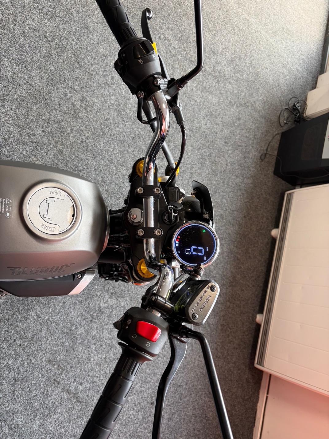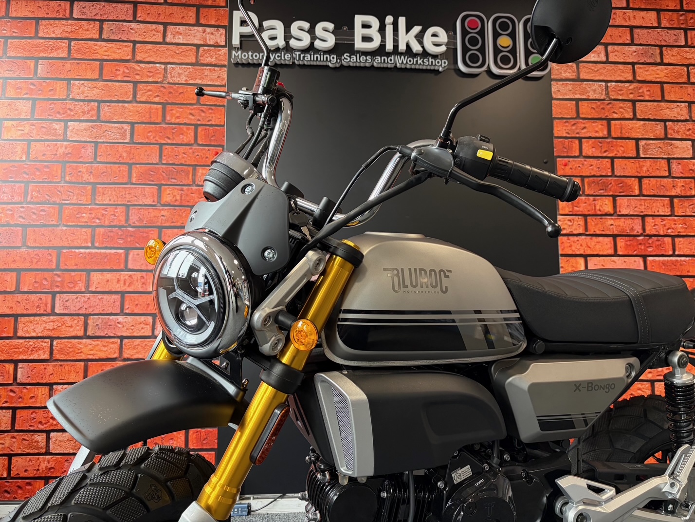 The BLUROC X-Bongo 125 is the essence of a motorcycle! Comfortable and nimble, combining a vintage design with modern technologies, it is designed for enthusiasts of motorcycles with unique character. Inspired by classic models and offering a fresh twist, the X-Bongo stands out with its angular and bold style, perfect for those seeking an original and practical two-wheeler.