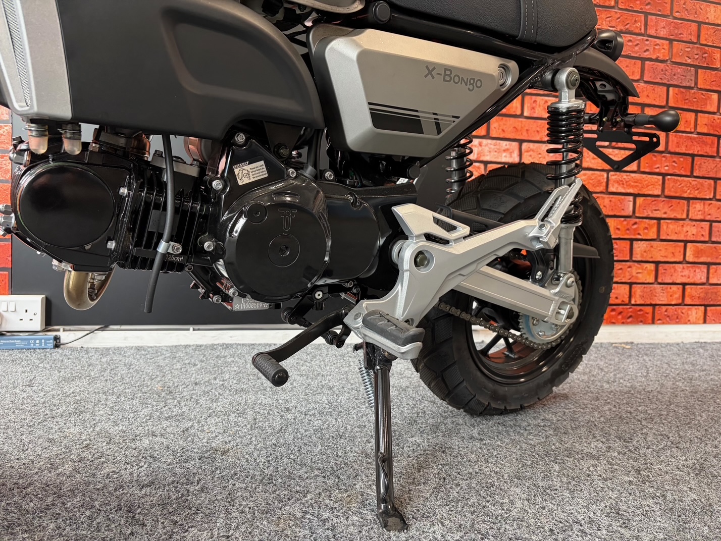 Housed in its compact frame is a 125cc horizontal single-cylinder air-cooled engine, equipped with electronic injection to meet the strictest environmental standards. Perfect for urban commuting and leisurely rides. Paired with a 4-speed manual gearbox, this ultra-durable engine offers both smoothness and high torque. Whether for daily commutes or excursions on secondary roads, the X-Bongo is a joy to ride.