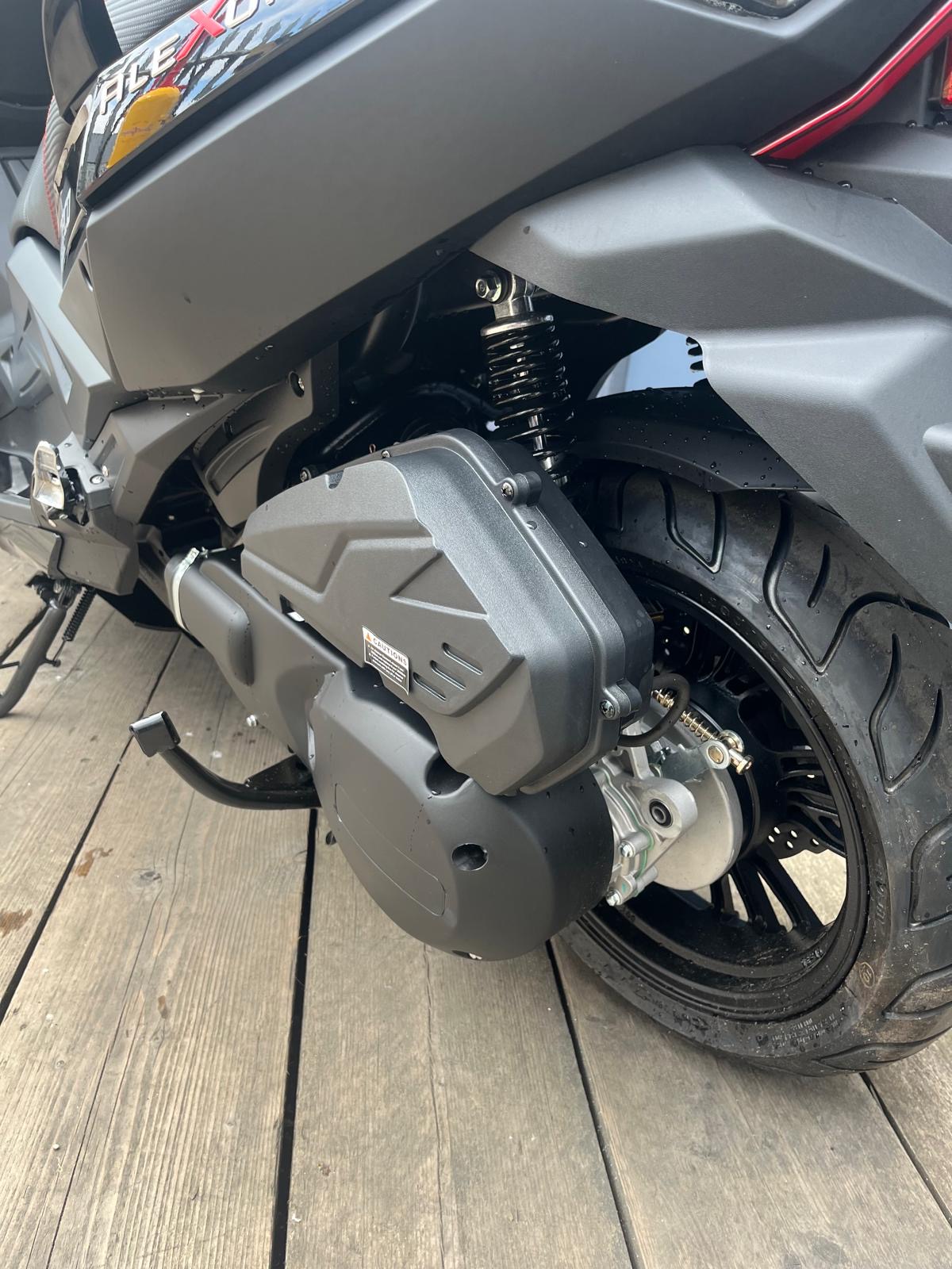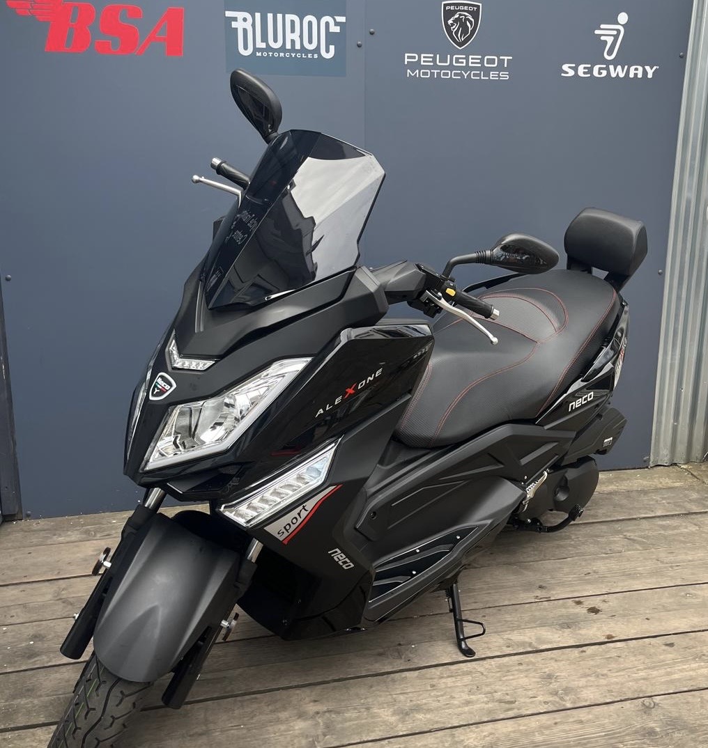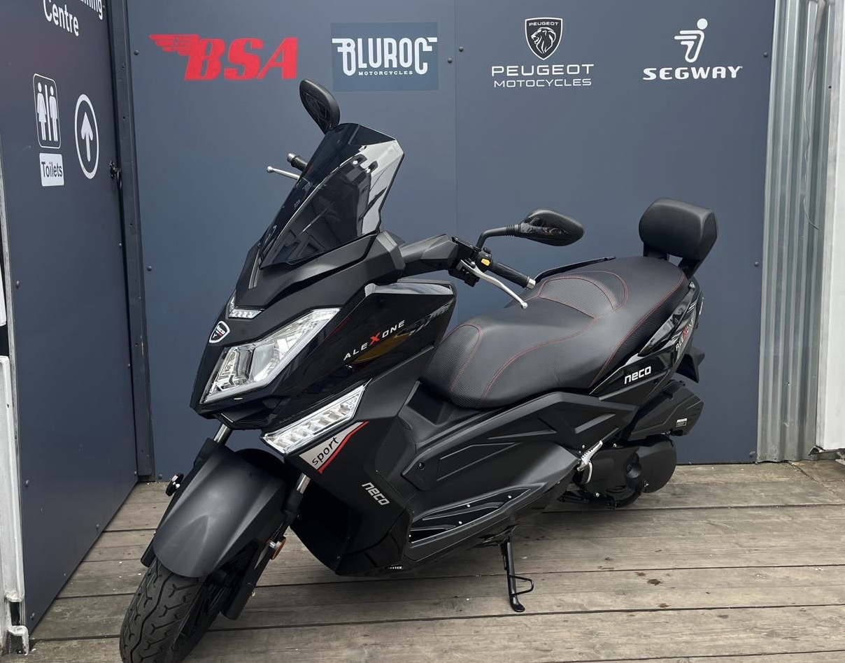 The Alexone has an athletic build, an ideal stature to stand out in heavy traffic and to be seen on the road. Powered by a powerful 125cc 4-stroke engine with plenty of torque, the Alexone allows you to ride with confidence as a duo, comfortably seated on the large, stepped seat behind a large protective windscreen. The practical aspects are not left out, as evidenced by the large trunk and the compartments cleverly positioned at the level of the driving position. Come and try it, you’ll be impressed by its potential!