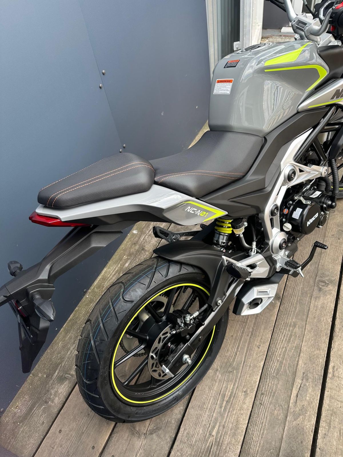 The NC-N01 is built to be intuitive and reassuring. It sits on a tubular trellis frame and an aluminum swingarm. A very rigid chassis suspended by a hydraulic mono-shock absorber and large diameter inverted forks. With these fitted it gives responsive but predictable handling at both high and low speeds. The under slung exhaust pipe also adds to the overall balance of the motorcycle.